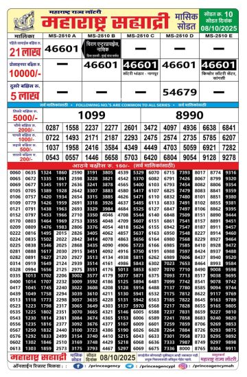 Maharashtra Sahyadri Monthly Lottery Result 08/10/25