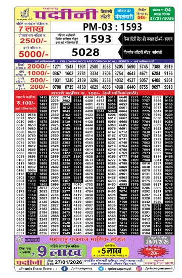 Maharashtra Padmini Weekly lottery result 27/01/26