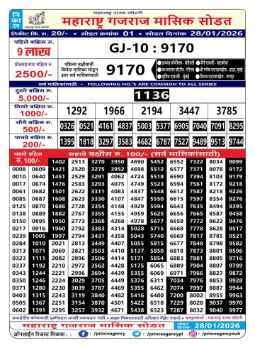 Maharashtra Gajraj Monthly Lottery Result 28/01/26
