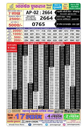 Maharashtra Gajlaxmi Lottery Result 25/01/26