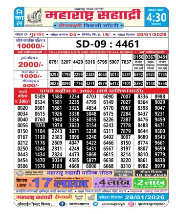 Maharashtra Sahyadri Weekly Lottery Result 29/01/26