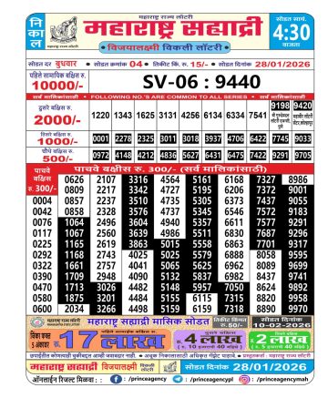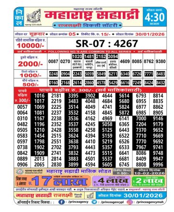 Maharashtra Sahyadri Weekly Lottery Result 30/01/26