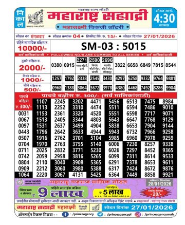Maharashtra Sahyadri Weekly Lottery Result 27/01/26
