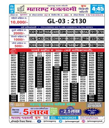 Maharashtra Gaj Laxmi Lottery Result 23/10/25