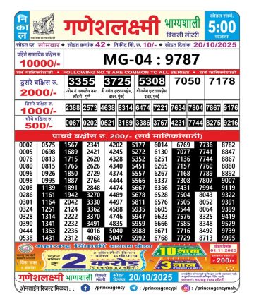 Maharashtra Ganesh Laxmi Lottery Result 20/10/25