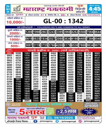 Maharashtra Gaj Laxmi Lottery Result 09/10/25