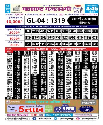 Maharashtra Gajlaxmi Lottery Result 10/10/25