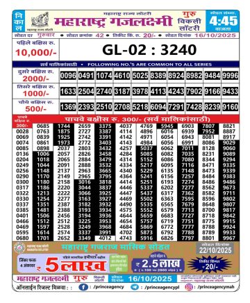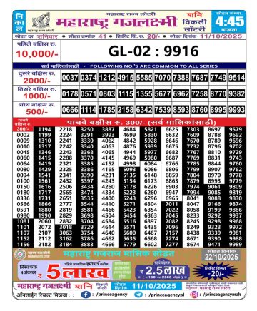 Maharashtra Gaj Laxmi Lottery Result 16/10/25