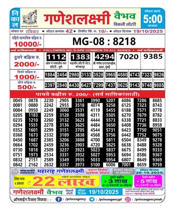 Maharashtra Ganesh Laxmi Lottery Result 19/10/25