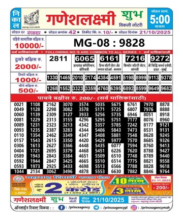 Maharashtra Ganesh Laxmi Lottery Result 21/10/25