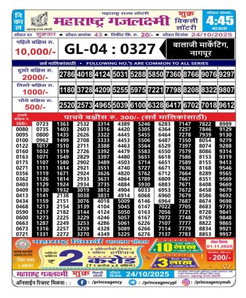 Maharashtra Gajlaxmi Lottery Result 24/10/25