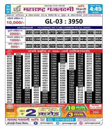 Maharashtra Gajlaxmi Lottery Result 25/10/25