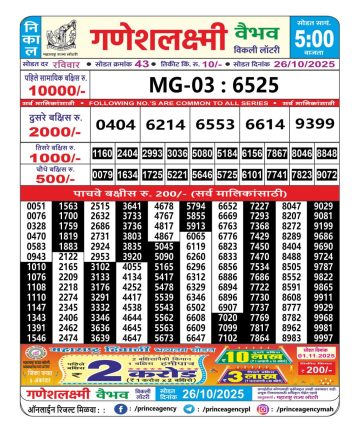 Maharashtra Ganesh Laxmi Lottery Result 26/10/25