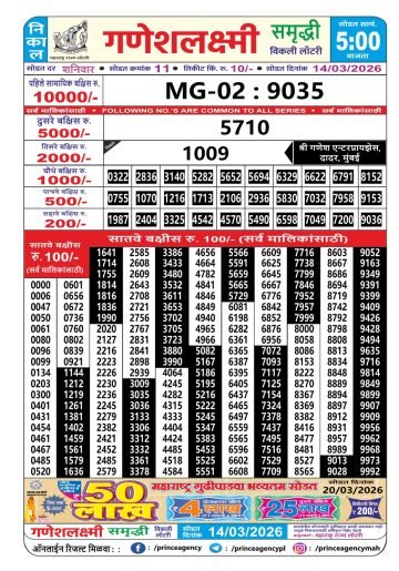 Maharashtra Ganesh Laxmi Lottery Result 14/03/26