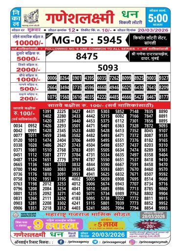 Maharashtra Ganesh Laxmi Lottery Result 20/03/26