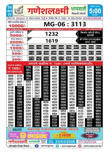 Maharashtra Ganesh Laxmi Lottery Result 23/03/26