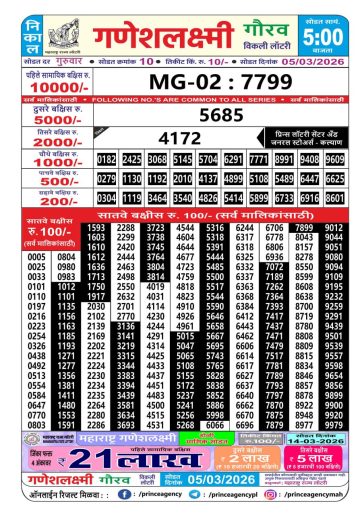 Maharashtra Ganesh Laxmi Lottery Result 10/03/26