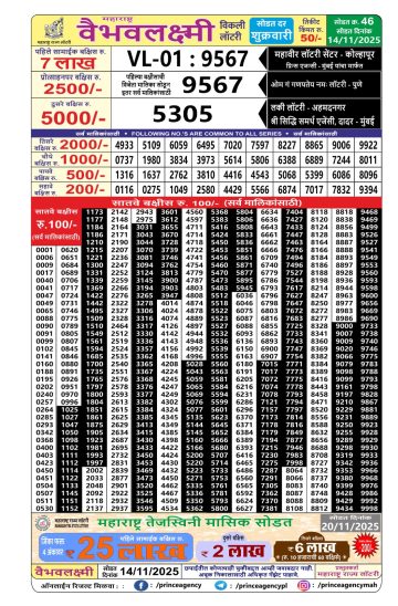Maharashtra Vaibhav Laxmi Weekly Lottery Result 14/11/25
