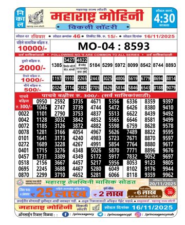 Maharashtra Gajlaxmi Lottery Result 16/11/25