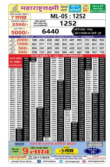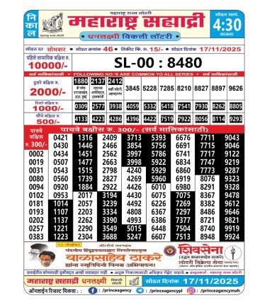 Maharashtra Gajlaxmi Lottery Result 17/11/25