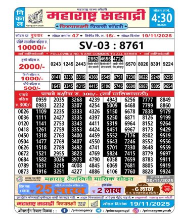 Maharashtra Sahyadri Weekly Lottery Result 19/11/25