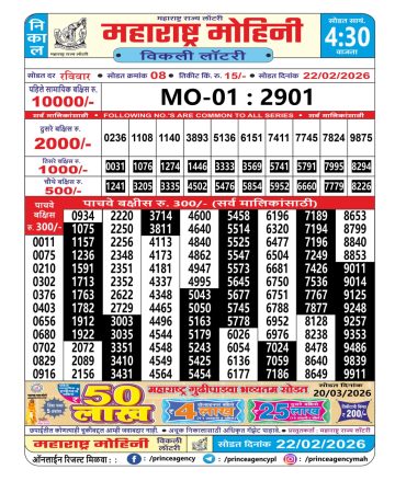 • Maharashtra Mohini Lottery Result 01/03/26