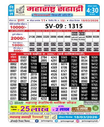 Maharashtra Sahyadri Weekly Lottery Result 18/03/26