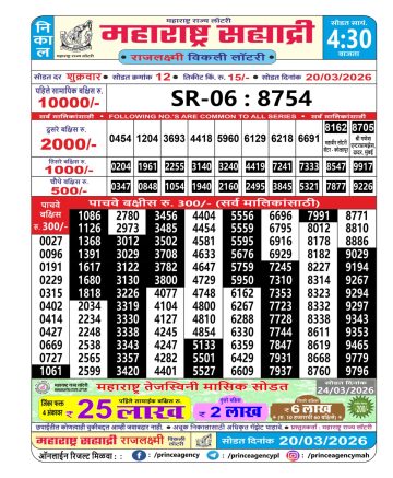 Maharashtra Sahyadri Weekly Lottery Result 20/03/26