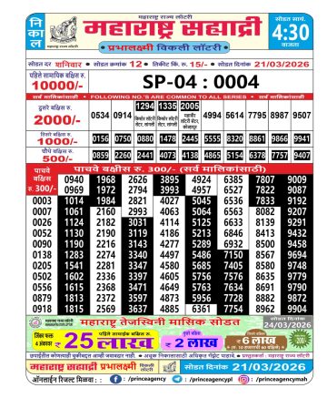 Maharashtra Sahyadri Weekly Lottery Result 21/03/26