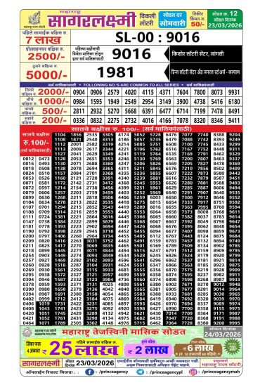 Maharashtra Sagar Laxmi weekly lottery result 23/03/2026
