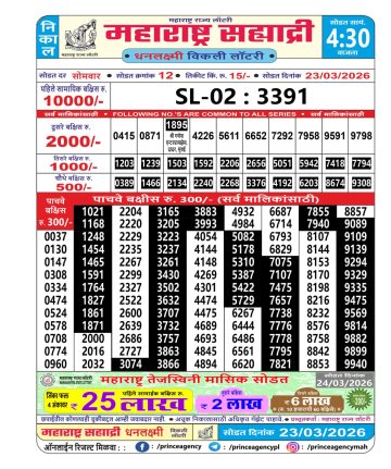 Maharashtra Sahyadri Weekly Lottery Result 23/03/26