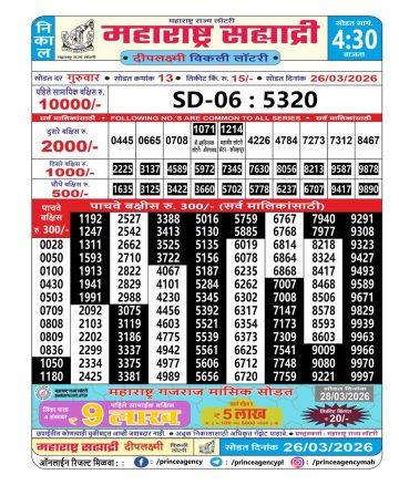 Maharashtra Sahyadri Weekly Lottery Result 26/03/26