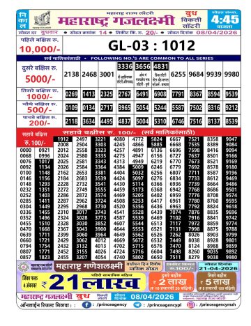 • Maharashtra Gaj Laxmi Lottery Result 15/04/26
