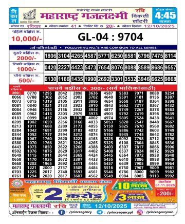 Maharashtra Gajlaxmi Lottery Result 20/10/25