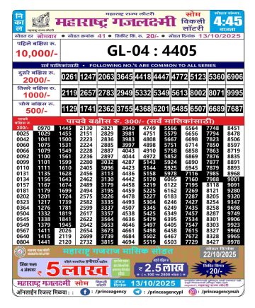 Maharashtra Gajlaxmi Lottery Result 13/10/25