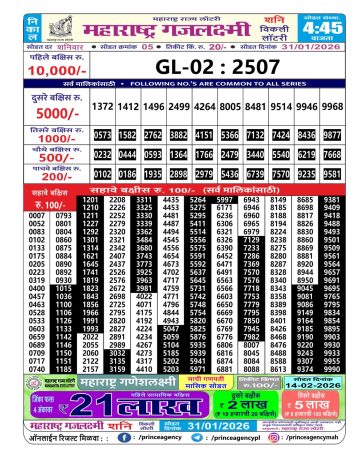 Maharashtra Gajlaxmi Lottery Result 31/01/26