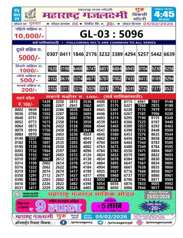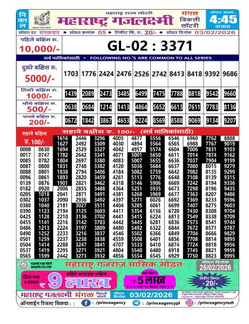 • Maharashtra Gajlaxmi Lottery Result 01/03/26
