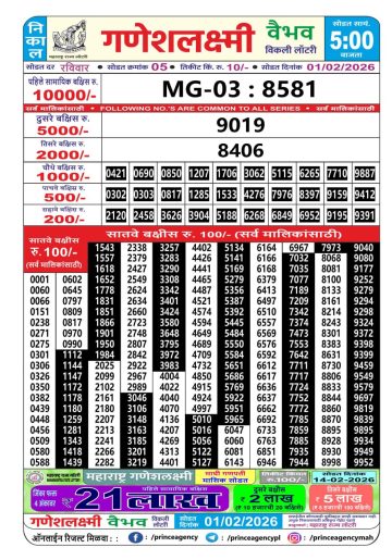 • Maharashtra Ganesh Laxmi Lottery Result 01/03/26