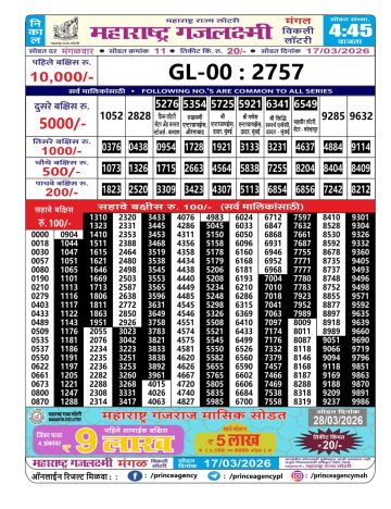 Maharashtra Gajlaxmi Lottery Result 17/03/26