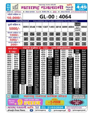 Maharashtra Gajlaxmi Lottery Result 21/03/26