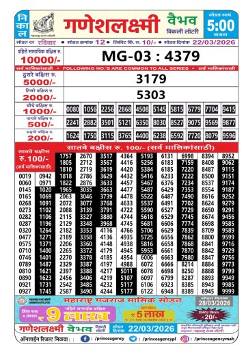 Maharashtra Ganesh Laxmi Lottery Result 22/03/26