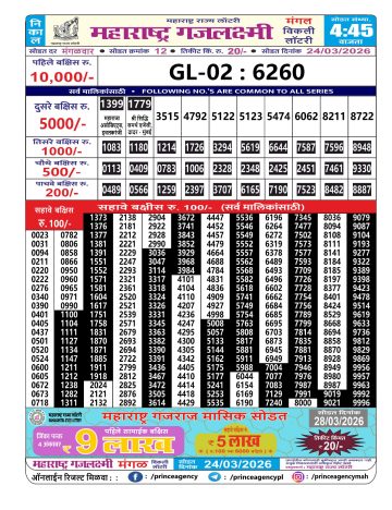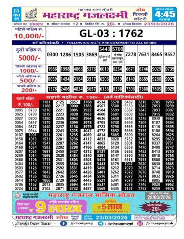 Maharashtra Gajlaxmi Lottery Result 20/03/26