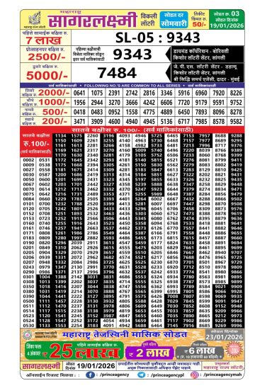 Maharashtra Sagar Laxmi weekly lottery result 19/01/2026