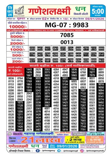 • Maharashtra Ganesh Laxmi Lottery Result 01/03/26
