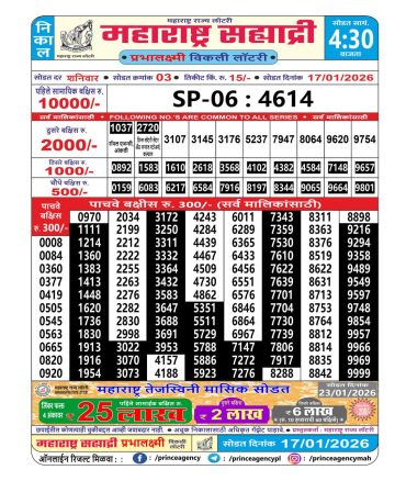 Maharashtra Sahyadri Weekly Lottery Result 14/01/26