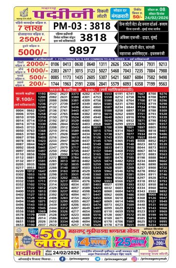 Maharashtra Padmini Weekly lottery result 24/02/26