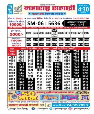 • Maharashtra Gajlaxmi Lottery Result 28/02/26
