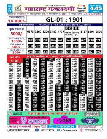 • Maharashtra Gajlaxmi Lottery Result 01/03/26