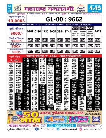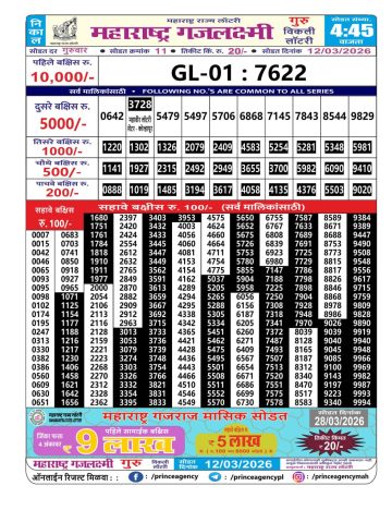 Maharashtra Gajlaxmi Lottery Result 20/03/26