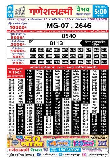 Maharashtra Ganesh Laxmi Lottery Result 15/03/26